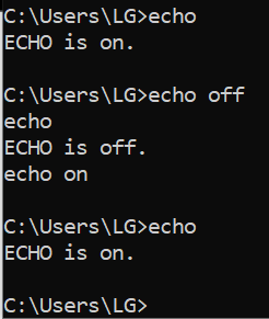 echo on 입력 : 커맨드 입력 부분(C:\>)이 보임